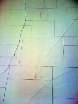Same wall that had plaster removed. We mudded and screwed in cement board. We v-ed out existing cracks to prevent recurrence.