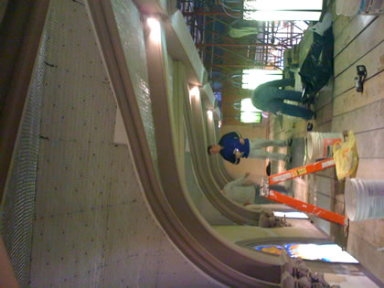 In this photo, Jack, Luke and Bart are plastering curved ceilings.
