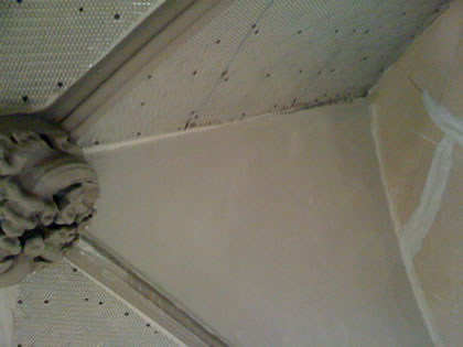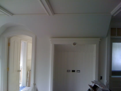 More fancy plasterwork. We had to plaster around existing woodwork.