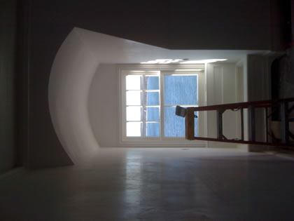 We curved the ceiling over angled framing.